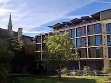 In the early 21st century not much development took place until completion of the college's new Gateway Buildings in 2013, which provide a new main entrance to the college and form the east, and final, side of the college's first quadrangle.[11] The funding for this was gained in part by Foulath Hadid who, for his outstanding services to the college, was elected to an Honorary Fellowship in 2004, and the Hadid Room, the college's meeting room, was named in his honour.[12]