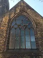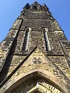 St Augustine's Church, Wrangthorn, usually referred to as simply Wrangthorn, is the church of the parish of Woodhouse and Wrangthorn, Leeds, West Yorkshire, England. It is near Hyde Park Corner at the top of Woodhouse Moor. It shares a benefice and clergy with St George's Church in the city centre, although the parishes remain separate. It was paid for by the Leeds Church Extension Society in 1866 and completed in 1871. The church, which is a Grade II listed building[4] is on a ridge of land between Meanwood Beck and the Aire Valley, on the north-west side of the city. Its architect, James Barlow Fraser (1835–1922), took advantage of this prominent location by including a three-stage pointed steeple; its blackened stone is a local landmark. The church is built in local gritstone ashlar in the Gothic Revival style and is adjoined by the smaller church hall of 1934.