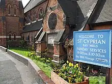 St Cyprian's Church, Hay Mills is a parish church of the Church of England in Hay Mills, Birmingham, England. It is situated on the southern side of the main Birmingham to Coventry Road A45 at the end of a lane called the Fordrough that leads to the factory of Webster & Horsfall Ltd. It has long been associated with the Horsfall family who built the church and continue to be its owners. Built in the 19th century of red brick in the Gothic Revival style it is dedicated to St Cyprian the third century martyr and Bishop of Carthage who although coming from a wealthy background gave away a portion of his wealth to the poor of Carthage, he was beheaded by the Romans in 258.[1] The church is now Grade II listed.[2]