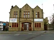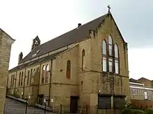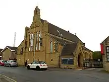 The former St Mark's Church, Old Leeds Road, Huddersfield, was an Anglican parish church in West Yorkshire, England. It was previously known as St Mark's, Leeds Road, before the road name was changed. ("Leeds Road" differentiates this building from St. Mark the Evangelist, Longwood, Huddersfield.) This building was designed in 1886 by William Swinden Barber[1] when the parish of St Peter's was split and a new building was required to accommodate a growing congregation. It was opened in 1887. Among the vicars posted in this benefice were the very popular Canon Percy Holbrook,[2] the notoriously unfortunate Reverend Jonas Pilling who was involved in a standoff with his congregation for many years,[3] the sociable Reverend Robert Alfred Humble who died in mysterious circumstances,[4][5] and the eloquent preacher Reverend Joseph Miller, who had previously been a Congregational minister.[6][7] The building was sold by the Church of England in 2001, and it has been converted into a block of offices.