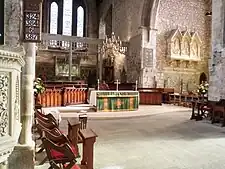 In 1651, after Oliver Cromwell's forces captured Limerick, the cathedral was used as a stable by the parliamentary army. This misuse was short lived, but was a similar fate to that suffered by some of the other great cathedrals during the Cromwellian campaign in Ireland.[5] The troops also removed the cathedral's original 4 metre (13 foot) Pre-Reformation high altar from the cathedral. The altar was only reinstated in the 1960s. It is the largest such altar in Ireland and the UK, carved from a single limestone block.[3] The altar is used for communion services at major festivals and remains in its historic location in what is now the chapel of the Virgin Mary or Lady Chapel.