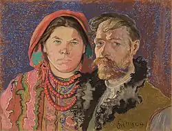 Using this technique, he painted many of his acquaintances and artists, among others Kazimierz Lewandowski, Jacek Malczewski, Eliza Pareńska, the Kryształowicz family, Ludwik Solski, Irena Solska, and Jan Stanisławski. He painted landscapes of Kraków – the Kraków Planty Park with desmans (also painted in oil), the Vistula Rudawa River, cottages in Grębowo, and at the end of his life, views from his studio to the Kościuszko Mound. He also created a poster for Maeterlinck's Wnętrze (Interior).