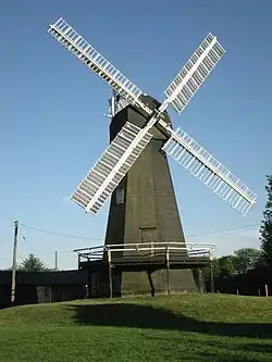 Stelling Minnis is home to a Grade I listed wooden smock mill,[7] built in 1866, and operated until 1970 when the last miller Alec Davison, died. It was restored to full working condition in 2003 with funding jointly provided by Kent County Council and the Heritage Lottery Fund. Alongside the windmill is a museum exhibiting the history of the mill, and of the common as a whole. This is seasonally operated by volunteers.