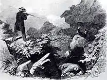 Considered at the time as the "most remarkable cleanup of road agents on record",[8] Venard tracked and killed three Wells Fargo stagecoach robbers on May 15, 1866, in the Yuba River's Myers' Ravine[9] with four shots from his Henry rifle,[1] returned the stolen $8,000 (~$126,203 in 2022) of gold dust, and then apologized for the excess shot.[10] When offered a reward by Wells Fargo, Venard accepted only half, and split the rest with his posse.[4] He received an inscribed, gold-mounted Henry rifle from Wells Fargo, and Governor Frederick Low appointed Venard to his personal staff with the rank of Lieutenant Colonel for "meritorious services in the field".[8][11] According to Harper's Weekly, "No romance could depict greater bravery".[4]