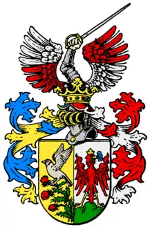 By the mid-18th century, two strands of the Stieglitz family were apparent as having emerged. Bartholomew Stieglitz, Mayor of Plzeň, Bohemia, was knighted in 1583 by Rudolf II, Holy Roman Emperor as Stieglitz von Čenkov; his son Kaspar and grandson Melchior Stieglitz fled to Saxony during the Thirty Years' War, where the family has since been established. In 1765, this patent of nobility was recognised by the Leipzig Council, and his great-grandson Christian Ludwig Stieglitz (1677–1758), long-time Mayor of Leipzig, was posthumously ennobled, he and his descendants occupying the Stieglitzens Hof in the central market square of Leipzig, forming a prominent political and legal dynasty of patricians. Sophie Charlotte von Stieglitz (1776–1839), the daughter of his son Wilhelm Ludwig von Stieglitz, an electoral Major of the Duchy of Saxe-Altenburg who was granted Mannichswalde, in 1799 married Dresden City Governor Heinrich Adolph von Gablenz and was mother of Austrian general Ludwig Karl Wilhelm von Gablenz. Mannichswalde was inherited by Thuisko von Stieglitz (1808–1881), the Royal Saxon Lieutenant General and Chief of the General Staff; his son Georg von Stieglitz (1848–1912) was a Saxon Lieutenant General, while his son Robert von Stieglitz (1865–1933) was a diplomat and the last Saxon envoy to the South German courts. The family also possessed Castle Langburkersdorf in Neustadt in Sachsen and Friedenthal in Hildburghausen.[3]