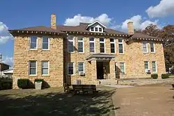 The Stone County Courthouse is located at Courthouse Square in the center of Mountain View, the county seat of Stone County, Arkansas. It is a 2+1⁄2-story stone structure, built out of native stone, with a hip roof that has exposed rafter ends. The building has a central section with flanking wings that project slightly, with the entrance at the center, sheltered by a portico with a hip roof, dentillated cornice, and square stone posts. The courthouse was built in 1922 to a design by Clyde A. Ferrell.[2]