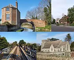 ![]() Clockwise from top-left: Nutshell Bridge on the Stroudwater Navigation, town high street, Church of St Cyr, Stonehouse railway station | |