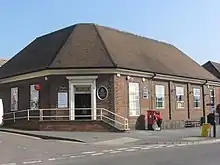 The B4008, High Street, is the main road through the town and also serves as a busy commuter route between Stroud and Gloucester, via Quedgeley. In 2011, Stonehouse High Street was made into a Community Shared Space, reopening in September 2011.[30] There are many shops on the High Street, including a medium-sized supermarket. The town's Post Office closed in 2017 and is now incorporated in the supermarket, with the old Post Office now the library. The town now has a free car park just off the High Street and where public toilets are sited.