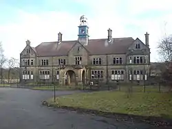 An area to the west of Storthes Hall Mansion, closer to Farnley Tyas, was chosen as a site for a psychiatric hospital in the early 20th century.[1] The facility, which was designed by J. Vickers-Edwards using a compact arrow layout, opened as the Fourth West Riding Pauper Lunatic Asylum in 1904.[1] The facility became known as the Storthes Hall Mental Hospital in 1929 and as the West Riding Mental Hospital in 1939.[2]