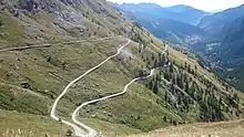 The road is almost entirely above 2000 metres altitude and so is only open from June 1 to October 31.[1] It runs along the ridge that separates the Val Chisone and Susa valley and passes several mountain passes between these valleys including Colle dell'Assietta (2,474 m), Colle Blegier (2,381 m), Colle Costa Piana (2,313 m), Colle Bourget (2,299 m) and Col Basset (2,424 m).[2]