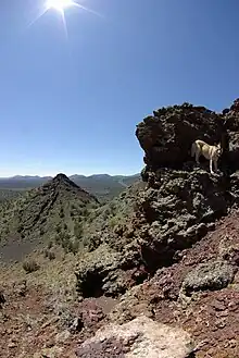 Strawberry Crater is a cinder cone volcano, more than 1,000 feet (300 m) high, in the San Francisco volcanic field, 20 miles (32 km) north of Flagstaff, Arizona.[6] It is along Forest Road 545 between the Wupatki National Monument and Sunset Crater National Monument in the Strawberry Crater Wilderness.[5] The crater lies in a volcanic field at a base elevation of about 5,500 feet (1,700 m), and prominence heights of about 6,526 feet (1,989 m). The northwestern end of the crater is covered with lava flows, while the southern end is filled with low cinder cones. Several of the surrounding cones include the better known, taller and younger Sunset Crater[7][8] in the adjacent Sunset Crater National Monument.