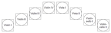 A string octet is a piece of music written for eight string instruments, or sometimes the group of eight players. It usually consists of four violins, two violas and two cellos, or four violins, two violas, a cello and a double bass.