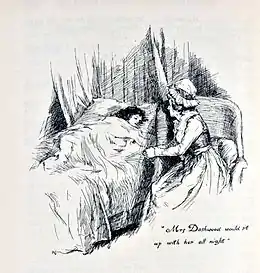 MacDonagh points out that none of the marriages in Austen's fiction of which she approved was financially imprudent.[115] For Austen, marriage and children were a girl's natural and best aspiration. She advocated sincere attachment, material prudence and circumspect delay in the choice of a marriage partner. If the appropriate conditions were met, then marriage should follow.[116] Austen realized that women without independent means felt very great pressure to marry someone who could look after them, because otherwise they would be a burden on their families.[117] The marriage market that she describes is quite detailed and well understood by all concerned. For example, as is explained in Mansfield Park, "Miss Maria Ward, 'with only seven thousand pounds', had the good luck to captivate a baronet, 'her uncle, the lawyer, allowed her to be at least three thousand pounds short of any equitable claim to it'. To indulge in a marriage less lucrative than might have been expected was regarded as 'throwing oneself away', and someone like Mary Crawford, who prided herself on her realism, could not bring herself to do it."[118]