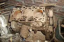 The EF is an automotive engine made by Subaru, introduced in 1984 for the Subaru Justy. It is a water-cooled, straight-three, four-stroke engine with a belt-driven single overhead camshaft, and a chain-driven balance shaft. It has an alloy cylinder head and a closed deck iron engine block with a bore spacing of 86.0 mm (3.39 in). The two-cylinder EK23 engine is closely related to the EF series, sharing the same bore spacing and overall design.[1] The export market 665 cc EK42 motor even shares the bore and stroke of the EF10.