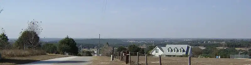 Sugarloaf Mountain, located along the western shore of Lake Apopka in Lake County, Florida, is the northernmost named upland associated with the Lake Wales Ridge, a series of sand hills running south to Highlands County. The mountain, really a ridge with rolling dome-like peaks, rises abruptly from the surrounding flat terrain. Its prominence is thought to be 245 feet (75 m),[1] with its highest peak having a local prominence of about 200 feet (61 m) relative to the surrounding ridge.[3] Sugarloaf Mountain's summit is the most prominent peak in the state, though it is about 10 percent lower than Florida's highest point, Britton Hill, which rises to 345 feet (105 m) above sea level in the Florida Panhandle.[4]
