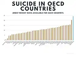 - ↑ "Suicide rates, age standardized - Data by country". World Health Organization. 2015. Archived from the original on 18 October 2017. Retrieved 13 April 2017.