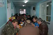 Thousands of people are fed daily in the church's soup kitchens in Kyiv.[14][15] The church also has a program helping homeless people acquire skills, thus helping them back to a normal life and work. According to the church, 2,000 children have been helped off the street and have been returned to their families. Furthermore, the church runs a 24-hour hotline, named "Trust line"[16] for people in need to call for help. The church also works with addicted people and has a program helping them to be set free from their various addictions. The main organization is called "Love Rehabilitation Center.”[17] According to the church, more than 5000 drug and alcohol addicted people have been set free from their addictions through the church's work.[18][19]