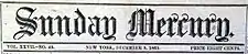 The Sunday Mercury (1839–1896) (sometimes referred to as the New York Sunday Mercury) was a weekly Sunday newspaper published in New York City that grew to become the highest-circulation weekly newspaper (at least by its own claims) in the United States at its peak.[1] It was known for publishing and popularizing the work of many notable 19th-century writers, including Charles Farrar Browne and Robert Henry Newell, and was the first Eastern paper to publish Mark Twain.[2] It was also the first newspaper to provide regular coverage of baseball, and was popular for the extensive war correspondence from soldiers it published during the Civil War.