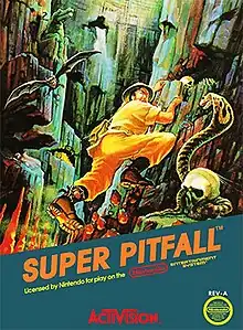 Super Pitfall (スーパーピットフォール, Sūpā Pittofōru) is a 1986 side-scrolling platform game for the Nintendo Entertainment System, PC-8800 series, and TRS-80 Color Computer 3 published under Activision's license. Despite the title screen stating that it was reprogrammed by Pony Inc, the actual development of the NES version was handled by Micronics with the PC-8801 version being developed by Pony Inc. while the CoCo version is credited as being "Programmed by Steve Bjork of SRB Software".[1] The PC-8801 version released in November 1986, two months after the original release in September 1986.