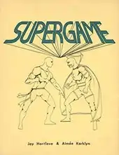 Supergame was designed by Jay Hartlove and Aimee Karklyn, and was published by DAG Productions in 1980 as a 64-page book.[1] The second edition was published in 1982 as a 40-page book featuring a color cover.[1]