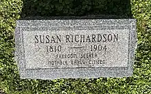 Susan Richardson's gravestone in Hope Cemetery, Galesburg