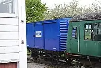 | LMS | PBA27 | 4-wheel ventilated van | Unknown build date. Later used by the Port of Bristol Authority and numbered 27. Recently restored to operational condition and painted blue with a 'Jewson' logo. [14] | ![]() |
