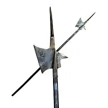 The halberd was the primary weapon of the early Swiss armies in the 14th and early 15th centuries. Later on, the Swiss added the pike to better repel heavy cavalry and roll over enemy infantry formations, with the halberd, longsword, or the Swiss dagger used for closer combat. The German Landsknechte, who imitated Swiss warfare methods during the early 16th century, also used the pike, supplemented by the halberd. The halberd is still the ceremonial weapon of the Swiss Guard in the Vatican.[1]