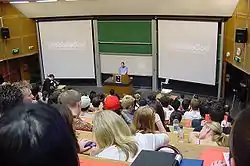 The Sydney University Evangelical Union is a registered student society of the University of Sydney, comprising an estimated 600 Christian students,[4] making it one of the largest registered clubs and societies of the Sydney University Union.[5] It is led by an elected student executive consisting of a president, male and female vice-presidents, a secretary and treasurer. They are elected annually at the September AGM.