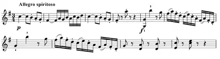 The opening theme of the first movement, as commenced by the first violins from measures 21 to 30.