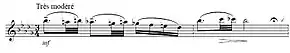 Syrinx, L. 129, is a piece of music for solo flute which Claude Debussy wrote in 1913. It generally takes three minutes or less to perform. It was the first significant piece for solo flute after the Sonata in A minor composed by C. P. E. Bach over 150 years before (1747[1]), and it is the first such solo composition for the modern Böhm flute, developed in 1847.[2]