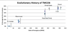 Evolutionary history of TMCO6 is show with respect to different organisms.