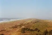 Table Bluff (Wiyot: Giloulh)[1] is a semi-flat terrace in Humboldt County, California, that terminates above the ocean in a dramatic, 165-foot (50 m) high cliff with views of the Eel River delta, the South Spit of Humboldt Bay, and the Pacific Ocean. It separates Humboldt Bay to the north from the Eel River to the south. It overlooks approximately 9,000 acres (36 km²) of wildlands administered by various federal and county agencies. It is 12 miles (19 km) south of Eureka and 5.5 miles (8.9 km) west of US Highway 101. Table Bluff County Park provides access to the South Spit. The park is also used as a hang-gliding and paragliding staging area. The federally endangered western lily, Lilium occidentale, is found growing on Table Bluff at Table Bluff Ecological Reserve.