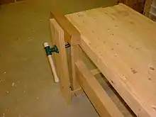 | Traditional Tail Vise | Low | Classic design Can be made with all wood parts | Relatively difficult to build and install Relatively fragile, unless constructed using dovetail or finger joints Unconstrained as to size and capacity It is theoretically possible to clamp workpieces which are as tall as the floor-to-ceiling distance, between the jaw and the apron |