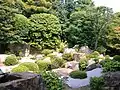 A new pond garden, or yoko-en, was designed by Kinsaku Nakane in 1963–1966. The new garden is large enough for visitors to walk in, and contains azaleas and a stream that cascades along the main axis, directly toward the main viewing position. The stream flows around rocks, gradually widening until it empties into a pool in front of the viewer.