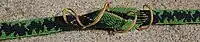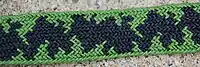 On the takadai it is possible to make intricate patterns using a technique called "pick-up braids". The braid has two sides of two contrasting colors and is usually linked on the edges. Then a pattern is formed by interchanging strands from the bottom braid to the upper braid, and by changing the braiding sequence.[1]