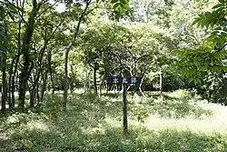 Takayama Castle was built on Mount Tsumataka, a 150-meter height overlooking the Nuta River, about 10 kilometers west of current center of Mihara city. On the opposite of the river is Mount Niitaka of similar height, and these two mountains stand like the pillars of gate. Originally there was an inlet with a length of over 10 kilometers from current river mouth on the Seto Inland Sea to just the below of the castle. This was an important port for the clan, which was also a maritime power on the Seto Inland Sea. Mount Tsumataka has two lines of ridges extending north and south. The northern ridge is the core part of the castle, which consisted of several enclosures protected by stone walls and dry moats. The total size of the castle was about 600 meter long and 400 meter wide.