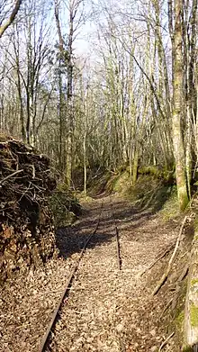 The ferrier's slag had long been used in a small way to repair roads and pathways. Towards the end of the 19th century, industrial methods began to be applied. To that purpose, a whole railway network was built in the ferrier at the beginning of the 20th century, using a 500 mm narrow gauge within the ferrier and a 600 mm gauge for the out-going tracks, complete with switches, turntables, derailers, workshop and well. It enabled the approach and operation of all workstations.
