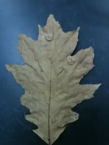 {{cite thesis}}: CS1 maint: postscript (link) - 1 2 Jensen-Tracey, S. (2011) Oak Leaf Blister: Taphrina caerulescens. Retrieved from Cornell University, Department of Plant Pathology and Plant-Microbe Biology Website. http://plantclinic.cornell.edu/factsheets/oakleafblister.pdf