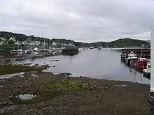 Tarbert (Scottish Gaelic: An Tairbeart, pronounced [ən̪ˠ ˈt̪ʰaɾʲapərˠʃt̪], or Tairbeart Loch Fìne to distinguish it from other places of the same name) is a village in the west of Scotland, in the Argyll and Bute council area. It is built around East Loch Tarbert, an inlet of Loch Fyne, and extends over the isthmus which links the peninsula of Kintyre to Knapdale and West Loch Tarbert. Tarbert had a recorded population of 1,338 in the 2001 Census.