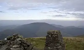 The summit is heathery and boggy, and has a small cairn to mark the highest point. The views are extensive to the south and east, with Plynlimon and Cardigan Bay ahead, while the north views are dominated by Cadair Idris and Maesglase to the west.