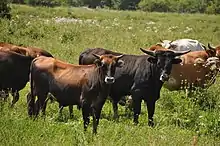 Hortobágy National Park in Hungary has the largest herd of Taurus cattle so far, counting 500–600 individuals of which around 200 are mature cows.[7] In addition to crossbred cattle that were imported from Germany, Ankole-Watusi, Hungarian Grey cattle crosses and one half-Holstein Friesian cow are used.[8] There are two sub-herds, a main herd at Pentezug and another one at Karácsonyfok.[9] Studies in the national park showed that cattle are less adapted to dry, cold grassland than Przewalski horses, and until a few years ago the cattle were supplementary fed.[9][10] The winter of 2011 was the first winter in which additional food was not necessary.[11]
