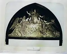 There is also a marble tarsia panel by Henri de Triqueti, who went on to work in the Albert Memorial Chapel at Windsor Castle. Installed in 1863, the panel was commissioned by Emily Fane de Salis and depicts the choir of angels.[24]