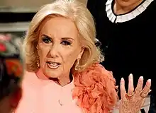 Most watched shows in the 2010s include variety shows Showmatch,[40] Almorzando con Mirtha Legrand, Susana Giménez Peligro: Sin Codificar and Peter Capusotto y Sus Videos, telenovelas Graduados,[49] Solamente Vos,[50] Malparida, Esperanza Mía, Educando a Nina, 100 Días para Enamorarse and Argentina, Tierra de Amor y Venganza, dramas Historia de un Clan, Para Vestir Santos, El Hombre de tu Vida, El Puntero, El Marginal, Un Gallo para Esculapio and Sandro de América, reality shows Bake Off Argentina, Big Brother, Perdidos en la Tribu and La Voz Argentina,[51] talk shows Intrusos and AM, Antes del Mediodía, game show A Todo o Nada and cooking show Cocineros Argentinos. Foreign telenovelas began to occupy more time on the networks' schedules, like Avenida Brasil, Amor à Vida, Binbir Gece, Fatmagül'ün Suçu Ne? and Os Dez Mandamentos being among the most watched shows of the decade.[52] Esperanza Mía became the first Argentine show to be filmed in Ultra-high-definition in 2015.[53]