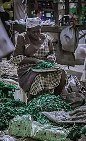 Telfairia occidentalis is a tropical vine grown in West Africa as a leaf vegetable and for its edible seeds. Common names for the plant include fluted gourd, fluted pumpkin, ugu (in the Igbo language), okwukwo-wiri (in Ikwerre language), and ikong-ubong (in the Efik and Ibibio languages), "Akwukwor ri" (in Etche language). T. occidentalis is a member of the family Cucurbitaceae and is indigenous to southern Nigeria.[1] The fluted gourd grows in many nations of West Africa, but is mainly cultivated in southeastern Nigeria and it is used primarily in soups and herbal medicines.[2] Although the fruit is inedible, the seeds produced by the gourd are high in protein and fat, and can, therefore, contribute to a well-balanced diet. The plant is a drought-tolerant, dioecious perennial that is usually grown trellised.