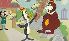 Tennessee Tuxedo and His Tales is an animated television series that originally aired Saturday mornings on CBS from 1963 to 1966 as one of the earliest Saturday morning cartoons.[1] It was produced by Total Television, the same company that produced the earlier King Leonardo and the later Underdog, and primarily sponsored by General Mills.[2] A co-sponsor was Pillsbury's Funny Face Drinks. (Tennessee Tuxedo debuted on CBS on the same day that King Leonardo last ran on NBC.[3]) The title is a play on the “tuxedo” dinner jacket worn as formal wear.