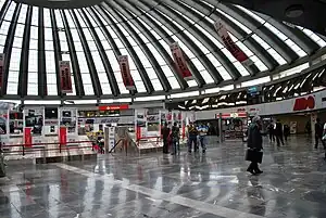 Terminal de Autobuses de Pasajeros de Oriente (Eastern Passenger Bus Terminal), better known by the acronym TAPO, is an inter-city bus station in Mexico City. It is located next to and conjoined with the San Lázaro metro station, in the Venustiano Carranza borough in the eastern part of Mexico City.[1] Designed by architect Juan José Diaz Infante Núñez, it is marked by its very large dome covering the structure. The outer rim of the circular interior contains ticket counters and boarding areas for bus lines. The center contains a food court and other businesses.[2]