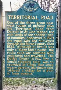 - ↑ "Historical Marker - S163 - Territorial Road (Marker ID#:S163)" (PDF). Michigan Department of Natural Resources.