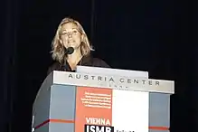 Terry Gaasterland speaking at the Intelligent Systems for Molecular Biology (ISMB) conference in Vienna in 2011
