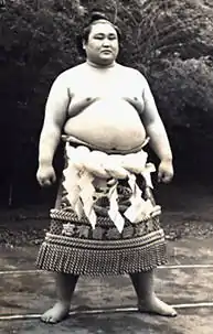 Terukuni Manzō (Japanese: 照國 万藏, January 10, 1919 – March 20, 1977) was a Japanese professional sumo wrestler from Ogachi, Akita. He was the sport's 38th yokozuna. He was promoted to yokozuna without any top division tournament titles to his name, although he later attained two.[1]