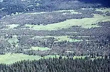 The Teton–Yellowstone tornado was a rare high-altitude tornado which occurred on July 21, 1987, in the U.S. state of Wyoming.[1][2] Rated at F4 on the Fujita scale, it remains the strongest tornado ever recorded in the state and the only recorded F4/EF4 tornado in Wyoming history.[3][4] The tornado cut through a 39.2-kilometre (24.4 mi)-long and 2.5-kilometre (1.6 mi)-wide swath of the Teton Wilderness and Yellowstone National Park, crossing the Continental Divide.[1] Damage occurred at elevations ranging from 8,500 to 10,000 feet (2,600 to 3,000 m), making it the highest-altitude violent tornado recorded in the United States.[2] At the time, it was the highest-elevation tornado known,[5] since surpassed by several others, including a 2004 tornado above 12,000 feet in California's Sequoia National Park.[6] While no human fatalities or injuries occurred,[3] an estimated one million trees were felled by the tornado.[7] The tornado damage was originally thought to be the result of strong thunderstorm straight-line winds until the area was surveyed by University of Chicago severe weather meteorologist Ted Fujita and his colleagues, who published a paper in 1989 surveying the tornado's path and discussing its meteorological character.[1]